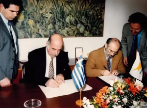 - Υπογραφή της συμφωνίας για τη δημιουργία του νέου Σταδίου ΓΣΠ. Πρόεδρος του ΓΣΠ ο Δώρος Ιωαννίδης, αδελφός του Ουράνιου Ιωαννίδη.