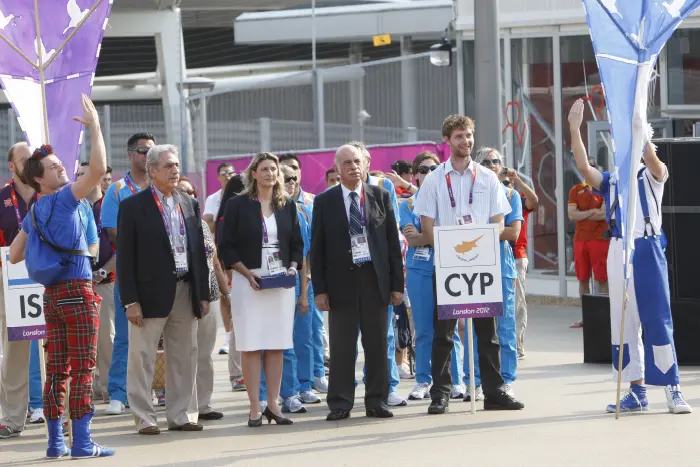 - Από εκδήλωση της Κυπριακής Ολυμπιακής Επιτροπής με τον Πρόεδρο της Δημοκρατίας Τάσσο Παπαδόπουλο και τον Κίκη Λαζαρίδη.