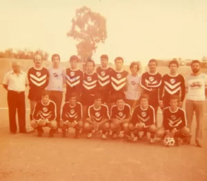 - Μέλος της ποδοσφαιρικής ομάδας της Ολυμπιάδας Νεαπόλεως. Δεύτερος ιστάμενος από αριστερά. Στην Ολυμπιάδα αγωνίστηκε τις περιόδους 1959-60 και 1975-1987. Έπαιξε ποδόσφαιρο έως τα 43 του χρόνια.